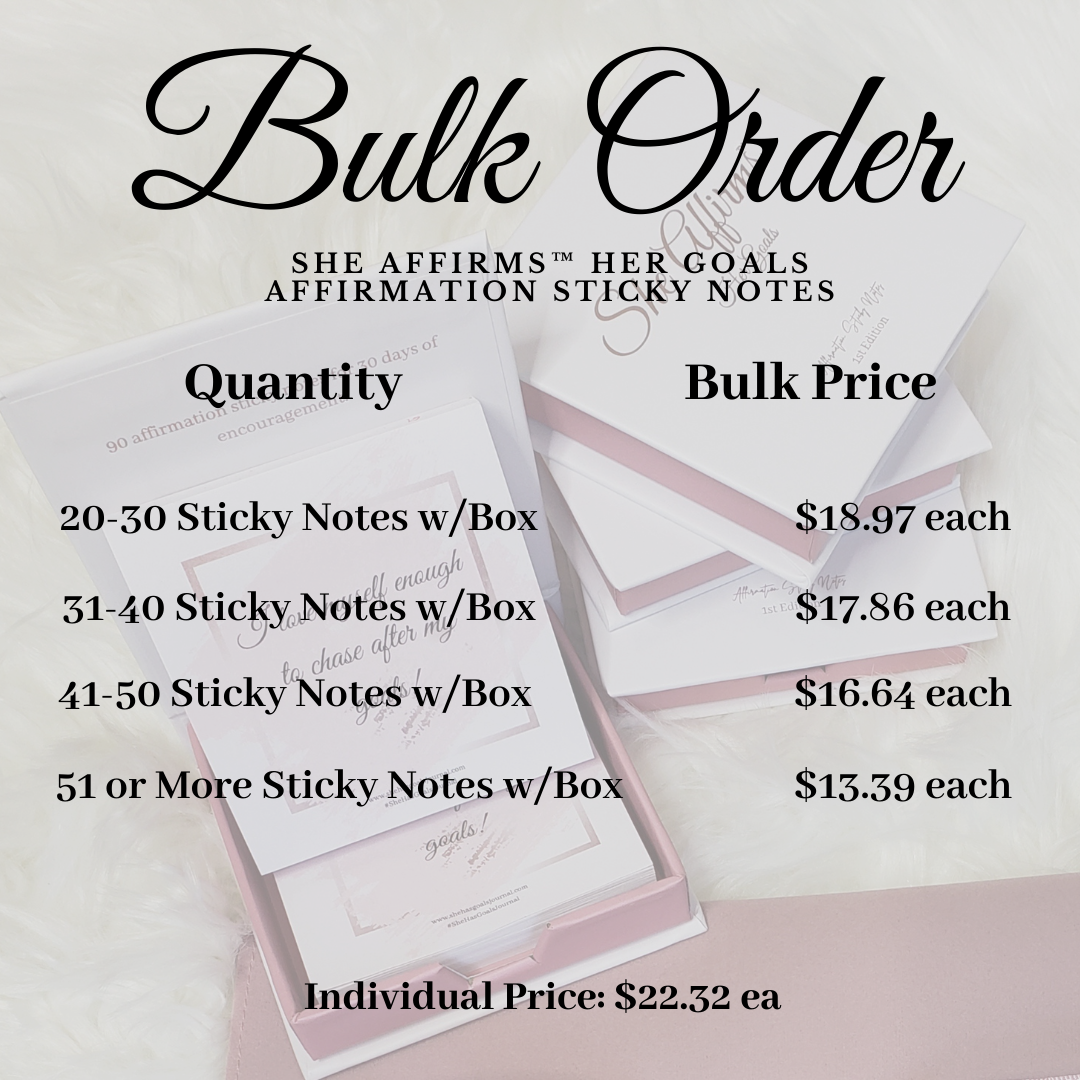 Bulk Order She Affirms™ Affirmation Sticky Notes (20 Packages Minimum)
